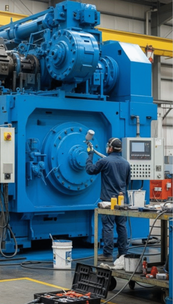 Professional cleaning and protective painting to restore machinery life and durability.